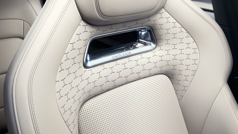 Diamond Quilt Windsor Leather seats with Diamond perforation and embossed Jaguar Leaper